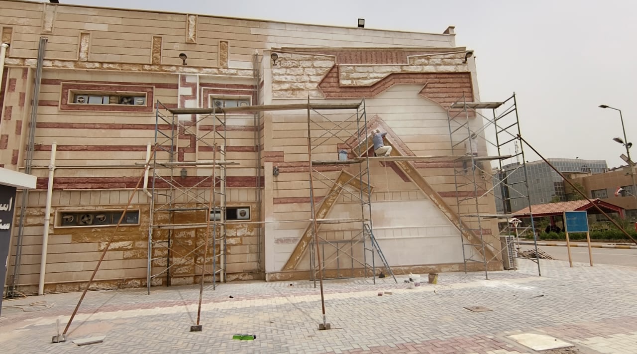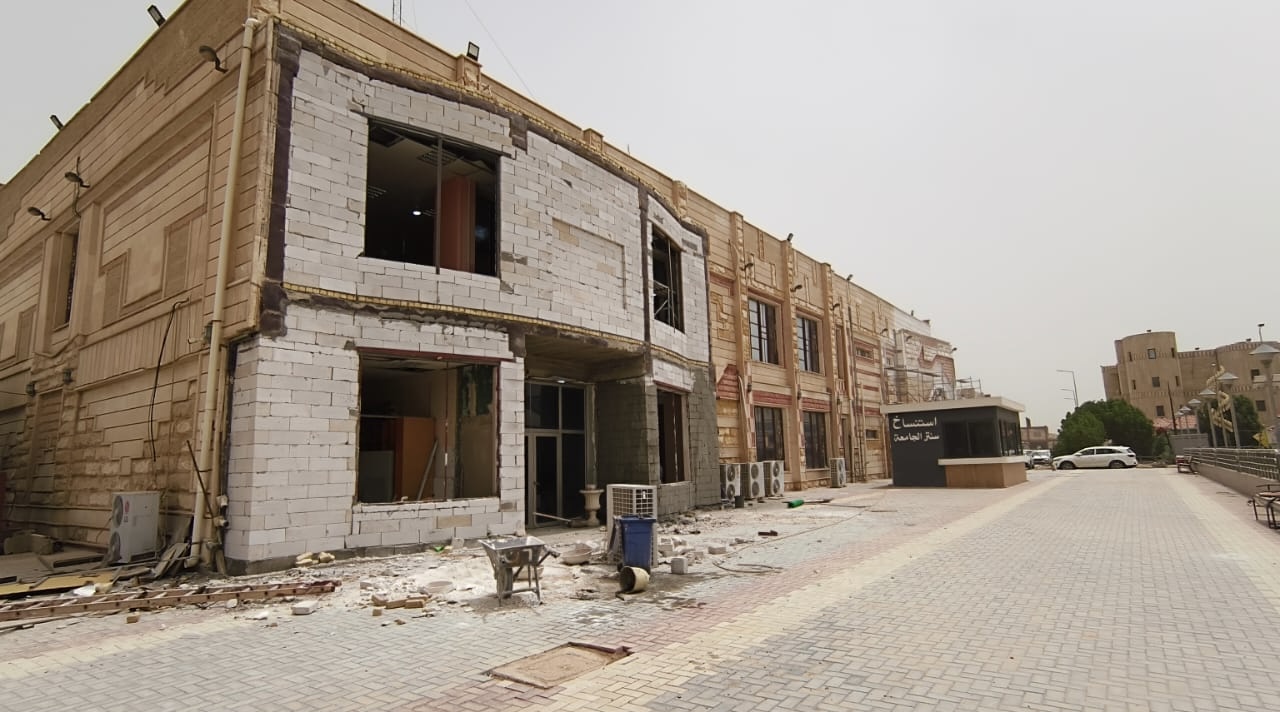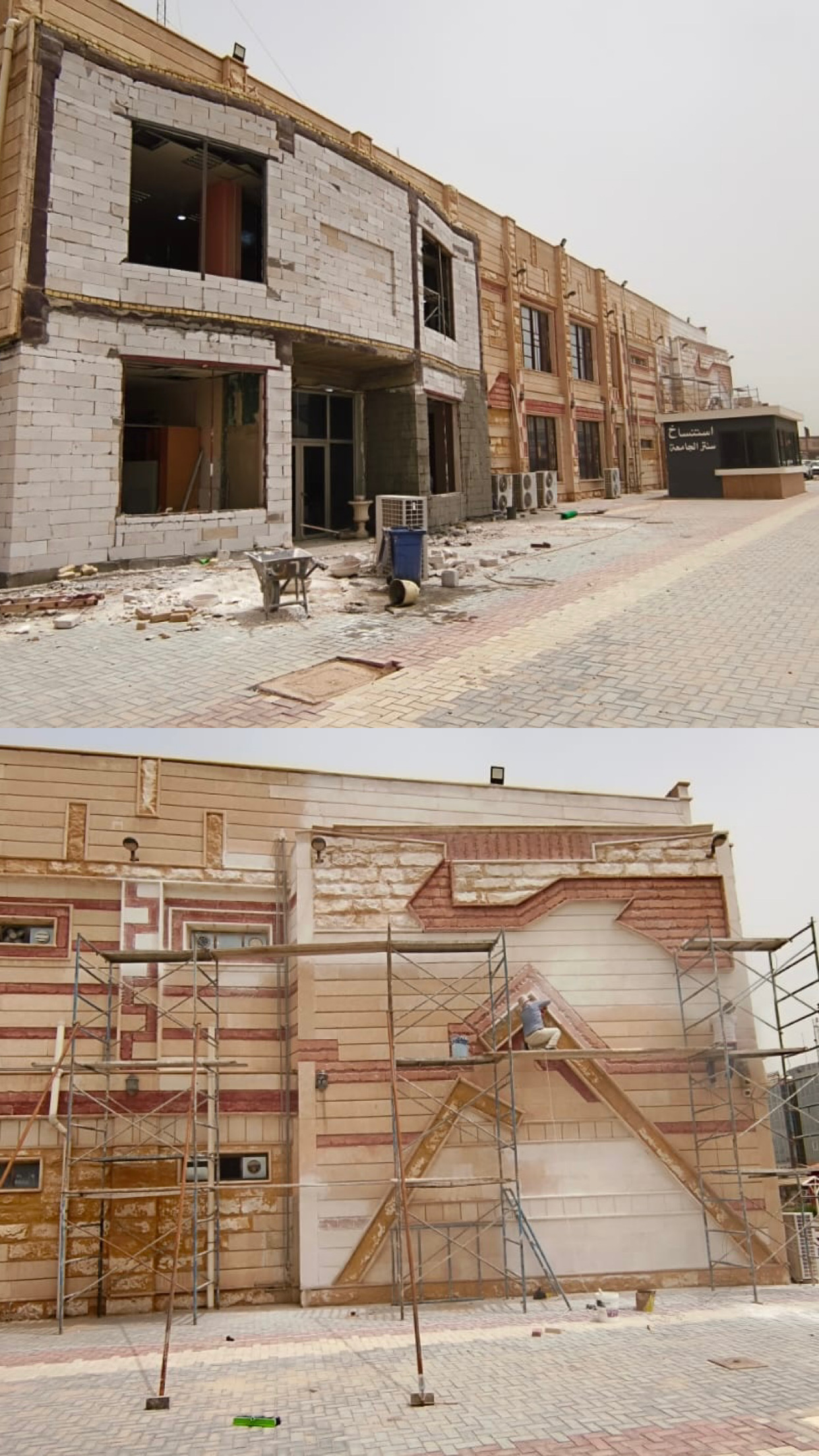 وكما تضمن المشروع إعادة صيانة الإطار الخارجي، وإصلاح التشققات، وتحسين الإضاءة والمظهر العام للواجهة، لتضفي على الكلية طابعاً جمالياً يعكس مكانتها الأكاديمية